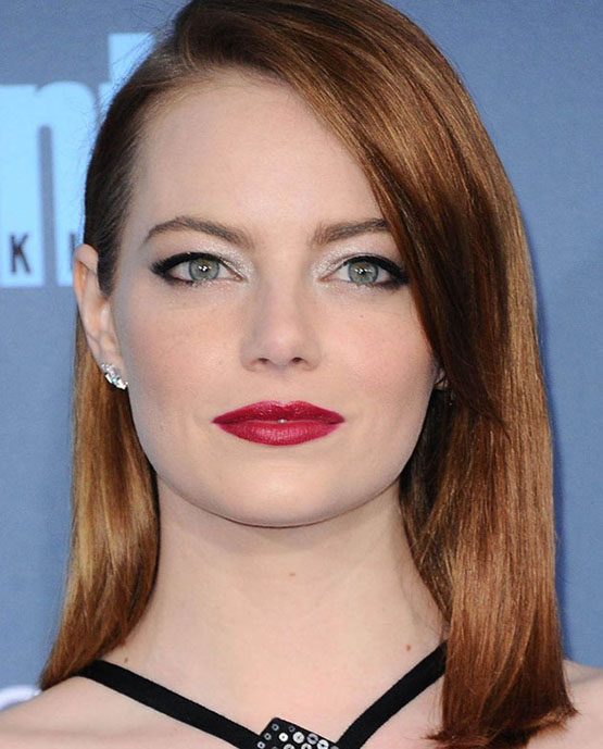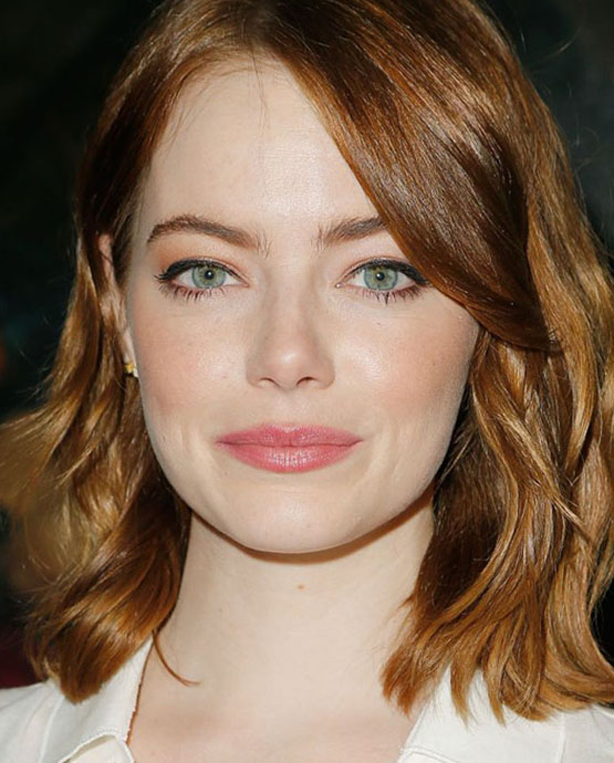 Variações de coral ficam lindas em ruivas – e o batom de Emma neste clique está aqui para comprovar. Para manter a vibe fresh, pele leve (as sardas aparecem sob a base), muita máscara para cílios e um traço curto de delineador para levantar o olhar. As ondas valorizam a cor do cabelo e dão um ar de diva ao look.