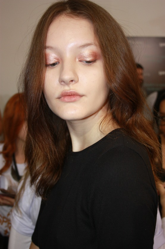 Para os olhos, as cores que chamaram mais minha atenção foram o dourado, o cobre e suas variações: os resultados são lindos de viver, têm um acabamento digno daquele tipo de pôr de sol arrasador que só o verão traz. E essa cartela de tonalidades invade as bochechas também. Bronzants e blushes em variações de terracota com leve brilho fizeram a cabeça de muitos beauty artists.